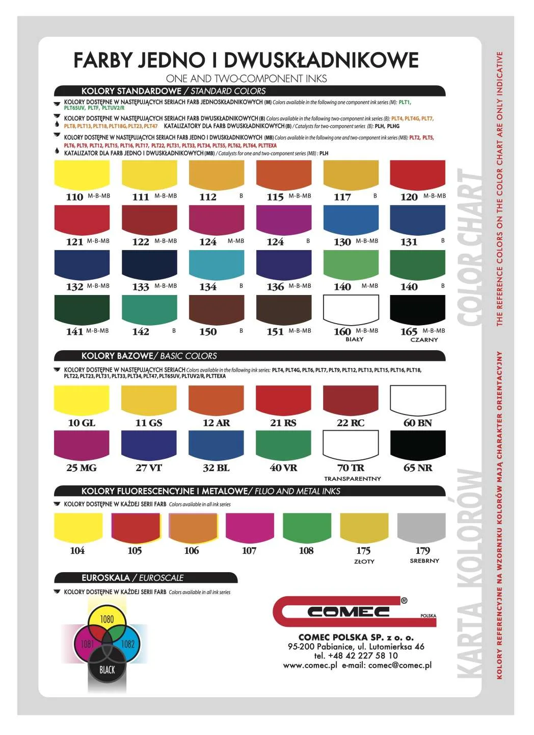 Zaleca się przygotowanie niewielkiej ilości próbki wymieszanej farby i wykonanie próbnego druku w celu sprawdzenia, czy farba spełnia wymagania pracy, która ma zostać wykonana (czy nadruki są oczekiwanej jakości). W czasie przygotowywania próbki należy zapisać ilość lub wagę każdego użytego składnika.