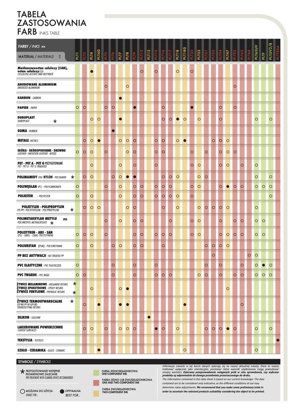 Tampodruk jest jedną z najbardziej wszechstronnych metod druku pod względem różnorodności przedmiotów, które mogą być zadrukowywane. Aby uzyskać dobrą jakość i wytrzymałość nadruku, farba do tampodruku musi zawierać duży odsetek pigmentu. W ofercie naszej firmy znajdują się farby, które pozwalają drukować na ogromnej liczbie materiałów.
